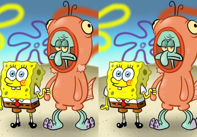 Spužva Bob i Lignjoslav kriju 5 razlika, pokušajte ih pronaći Zanimljivosti 16.10.15. 15:58 Na slici se nalazi 5 razlika koje nisu očigledne. Na slici se nalazi 5 razlika koje nisu očigledne. Dobro otvorite oči i pokušajte pronaći razlike.
