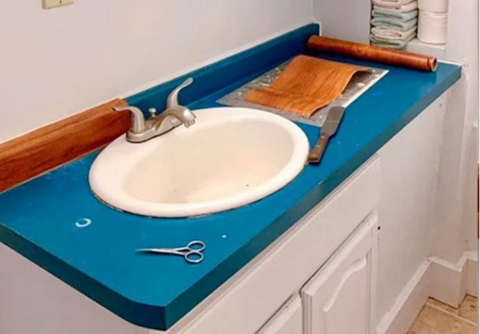 1. “Upravo sam napravila svoj kupaonski pult ovako s rolom ljepljivog papira od 11,99 dolara.”