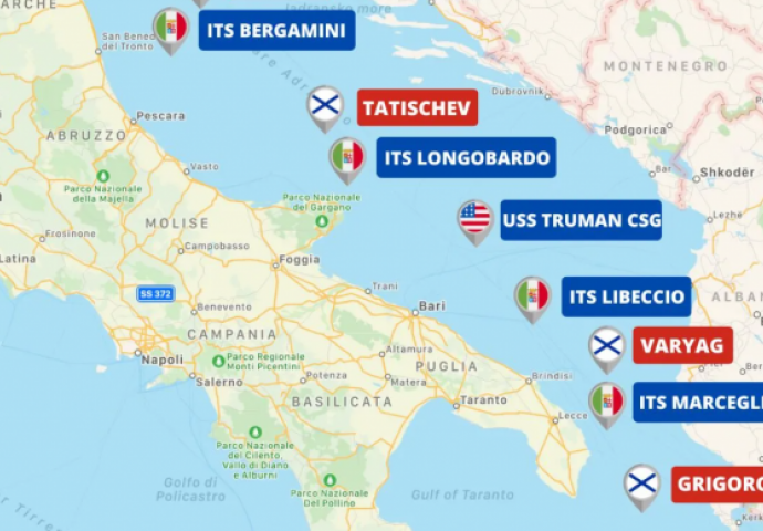 Naime, tri različite ruske jedinice ušle su u Jadransko more, gdje se nalazi nosač zrakoplova USS Truman (CVN-75) i njegova borbeno-udarna grupa: