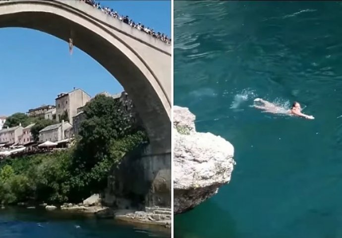 Na internetu je osvanuo i novi video na kojem se vidi Tara kako skače sa nove skakaonice koja je postavljena malo ispod Starog mosta.