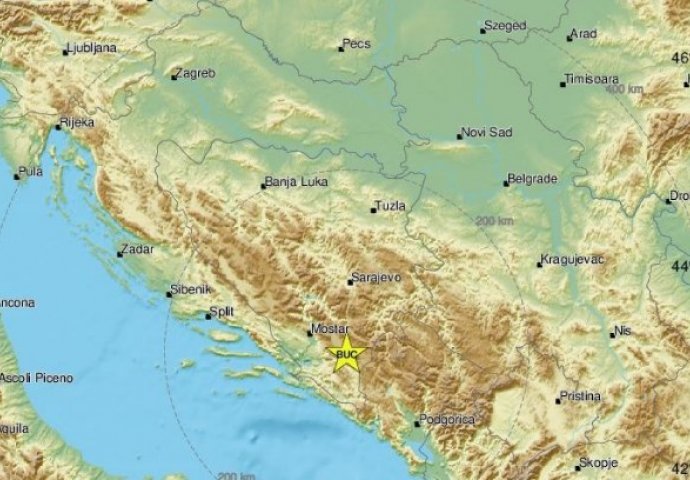 Kako javlja EMSC, epicentar podrhtavanja zabilježen je 47 kilometara jugoistočno od Mostara te 21 kilometar jugoistočno od Nevesinja.