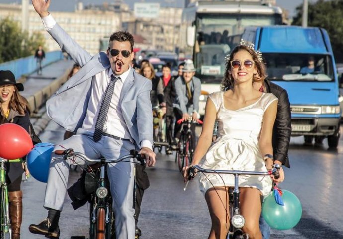 Jedan beogradski par odlučio se na nekonvencionalan način proslave vjenčanja, jer umjesto okićenih automobila kroz grad su prošli na biciklima.