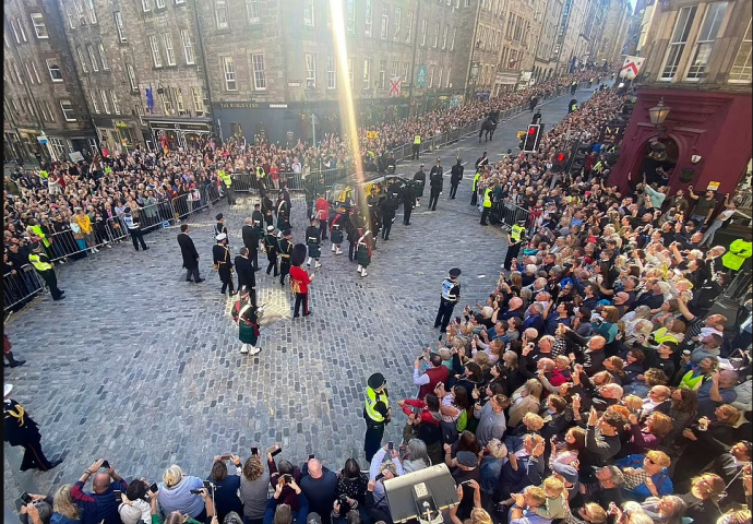 Jedna, ali posebna zraka sunca koja je sijala s neba snimljena je kamerom kako obasjava kovčeg kraljice Elizabete II, tokom procesije koja je prenijela njeno tijelo u St. Giles Cathedral u Edinburgu, piše Daily Mail.