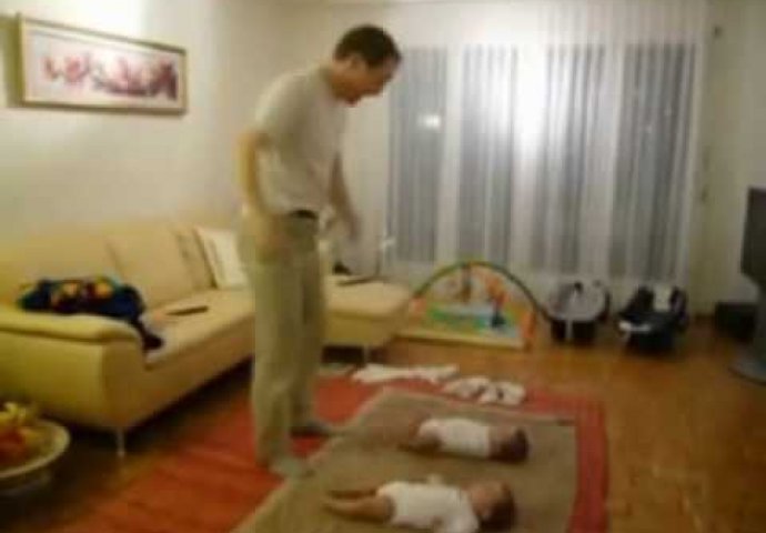 U ovoj kući nema spavanja dok ovaj zanimljivi tata ne obavi ritual sa svojim bebama koje odlično sarađuju.