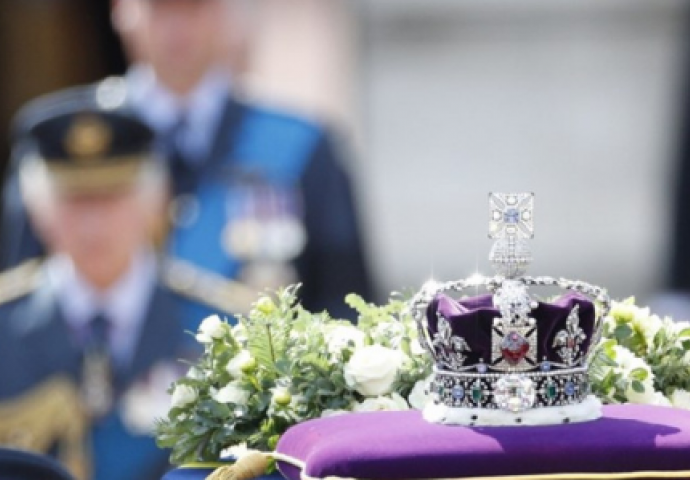 Britanska kraljevska državna kruna na lijesu kraljice Elizabete II simbol je kraljevske suverenosti.