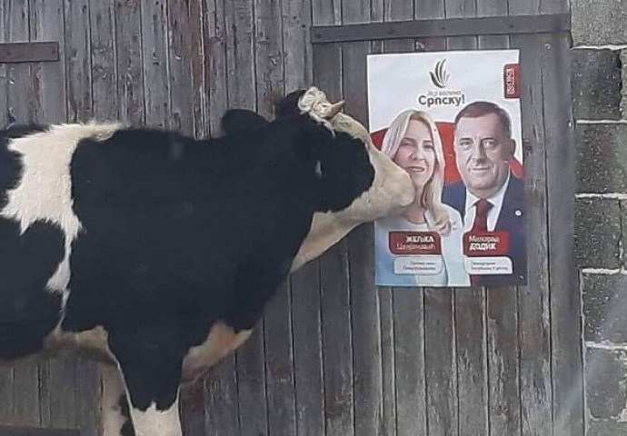 HIT NA INTERNETU: Krava prišla plakatu SNSD-a, Cvijanović dobila "poljubac", Dodiku ništa