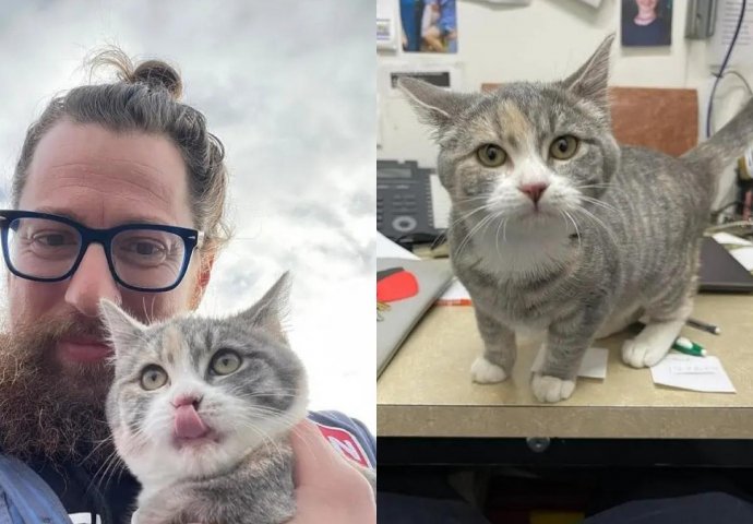 Kada je završio sa poslom taj dan, poveo je macu sa sobom kući kako bi se odmorila i opustila u prijatnoj atmosferi. Ona je sjedila na njegovoj ruci celim putem do kuće!