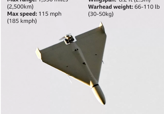Ukrajina je identificirala dronove - ili bespilotne letjelice (UAV) - kao iransko oružje Shahed-136. Zovu ih bespilotne letjelice kamikaze po japanskim borbenim pilotima koji su letjeli u samoubilačkim misijama u Drugom svjetskom ratu.