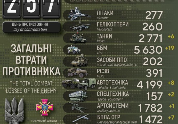 Ukrajinci su objavili nove procjene ruskih gubitaka.