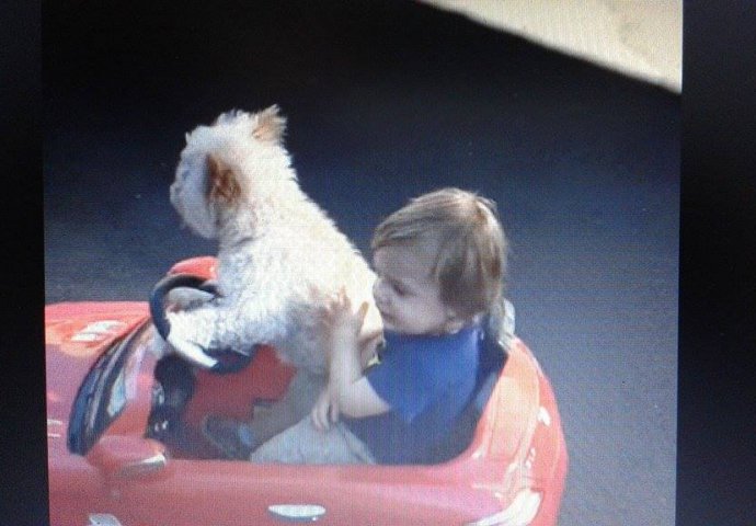 Doduše, nije riječ o pravom automobilu, ali kako god, odlično mu ide. Na suvozačevom mjestu je maleni dječak koji uživa u vožnji.