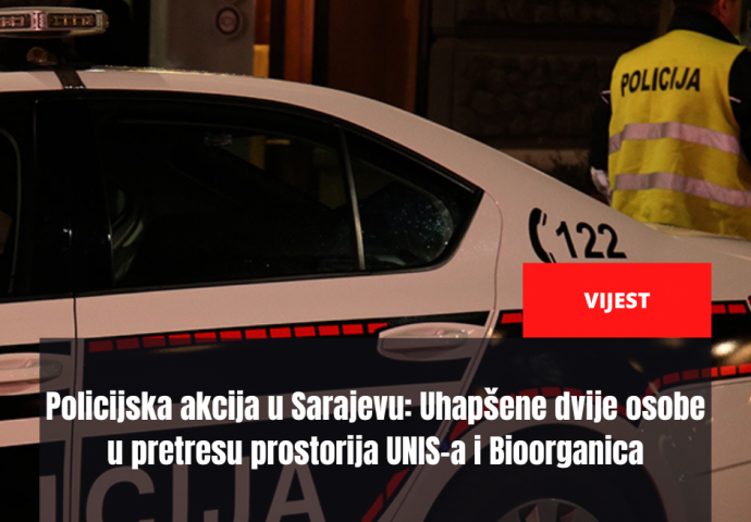 Policijska akcija u Sarajevu: Uhapšene dvije osobe u pretresu prostorija UNIS-a i Bioorganica