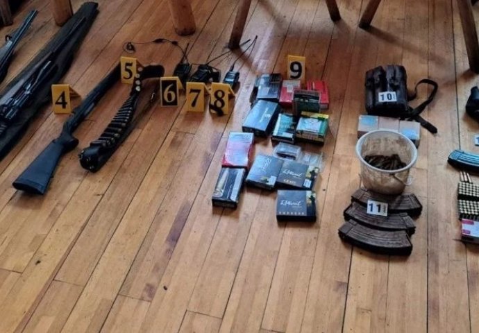 U toku akcije zaplijenjeno je šest pušaka, 2.878 metaka različitog kalibra, 45 patrona, dvije ručne radio stanice i digitalna vagu za precizno mjerenje, sa tragovima bijele praškaste materije koja ascorina na opojnu drogu, saopćeno je iz Ministarstva unutrašnjih poslova RS.