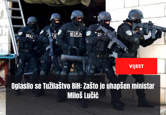 Oglasilo se Tužilaštvo BiH: Zašto je uhapšen ministar Miloš Lučić