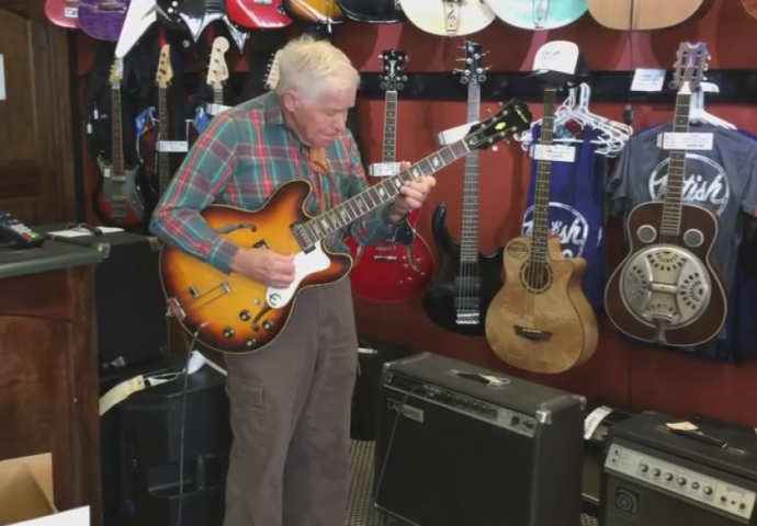 Menadžer prodavnice muzičkih instrumenata snimio je performans 81-godišnjeg dedice još 2014. godine, a do sada je taj video pregledan preko 2 miliona puta na Facebooku.