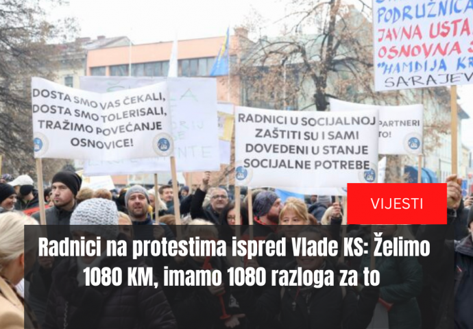 Ispred zgrade Vlade KS u toku su protesti radnika iz osnovnih i srednjih škola, predškolskih, visokoškolskih i ustanova kulture, nauke i socijalne zaštite, MUP-a i organizacionih jedinica Uprave policije, zavoda i organa državne službe, javnih komunalnih preduzeća i javnih ustanova zdravstva. Traže povećanje plate, ali i isplatu jednokratne novčane pomoći u iznosu od 1080 KM, za što je premijer Edin Forto rekao da nema novca.