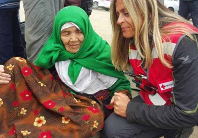 Starica je istakla kako je sa 17 članova svoje porodice prešla težak put preko planina, pustinje, mora i šuma da bi stigla do Evrope. Putuju već 20 dana, a veći dio puta su je na leđima nosili njen 67-godišnji sin i 19-godišnji unuk.