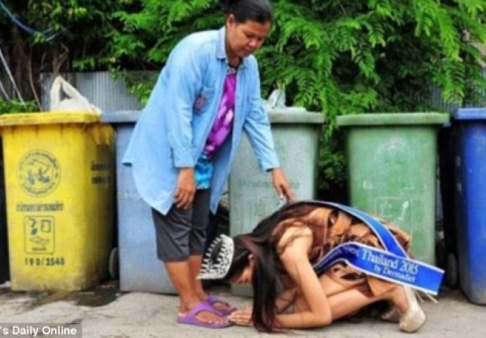 Ne skidajući blještavu krunu sa glave, misica se sagla na koljena i poljubila majci stopala, i to sve pored kanti za đubre, pored kojih su njih dvije godinama provodile dane. Ovo se smatra najponiznijim znakom zahvalnosti na Tajlandu, a slika je postala pravi hit čim je objavljena na internetu.