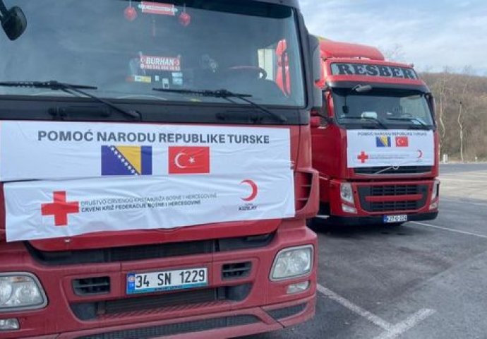 Kamioni Crvenog križa Federacije BiH otputovali su danas za Tursku s prioritetnom robom za uspostavljanje kampova za prihvat osoba koje su ostale bez svojih domova.