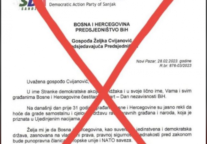 Ona je u svojstvu predsjedavajuće Predsjedništva BiH dobila prazničnu čestitku od SDA Sandžak koju je potpisao predsjednik Sulejman Ugljanin, a na Instagramu je Cvijanović prekrižila crvenim znakom X.