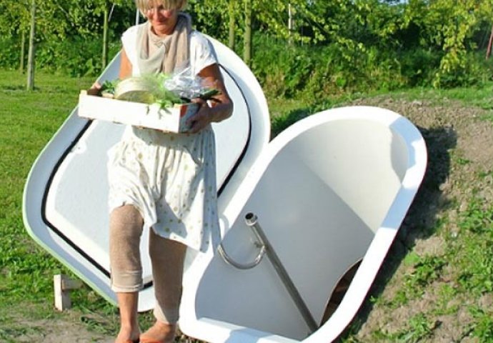 Osim toga, iskopanu zemlju ne morate nigdje da odvozite. Iskopajte rupu, ubacite unutra ovalni frižider i vratite iskopanu zemlju na vrh. Groundfridge se postavlja tako da ga sile uzgona ne podignu iznad zemlje.