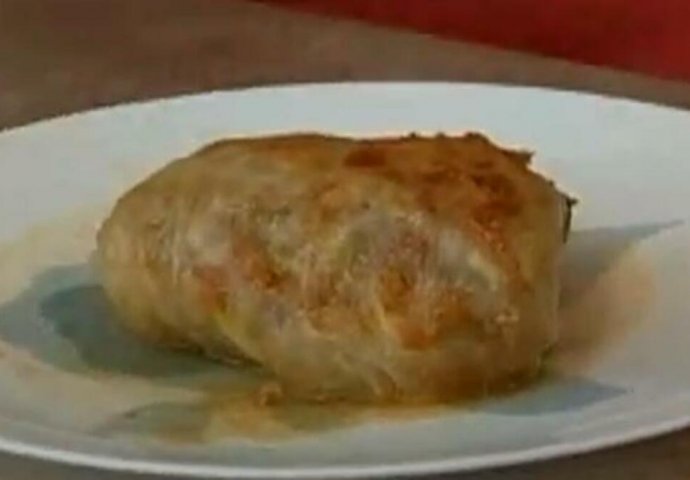 Stavljamo kašikom na početak lista smjesu od mesa pa preklopimo od dole malo preko mesa, pa malo sa lijeve strane i malo sa desne i onda urolamo sve zajedno.