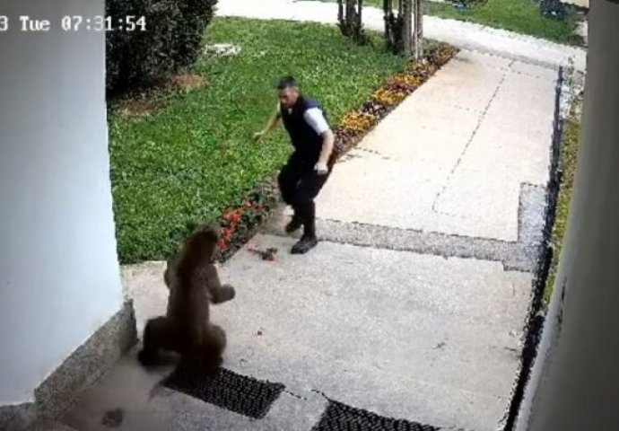 Medvjed napao zaštitara u Bugojnu: Nadzorne kamere zabilježile borbu (VIDEO)