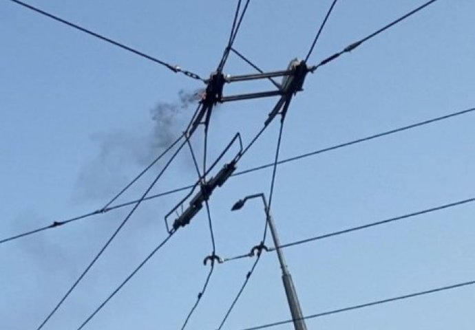Na kružnom toku u naselju Hrasno u Sarajevu, na izlazu prema Malti, zapalile su se trolejbuske žice.
