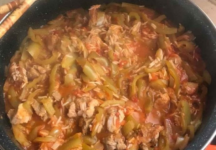 U većoj šerpi na malo ulja prodinstajte sitno sjeckani crni luk, pa dodajte sjeckano meso po izboru. Posolite i pobiberite, pa kada se meso prorpži dodajte sjeckane paprike, paradajz i tikvice. Sipajte pola čaše vode, pa poklopite i ostavite da se krčka. Kad povrće pusti sok dodajte pirinač i kuhajte dok sve ne omekša. Začinite po želji. Prijatno!