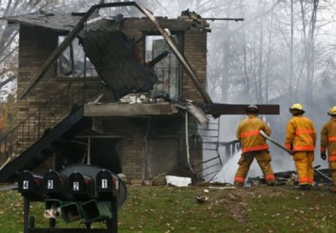 Mali avion, "hoker", koji je leteo ka aurodromu Fulton u Akronu, zakačio je jednu stambenu zgradu koja se zapalila, poslije čega su lokalni stanovnici ostali bez struje.