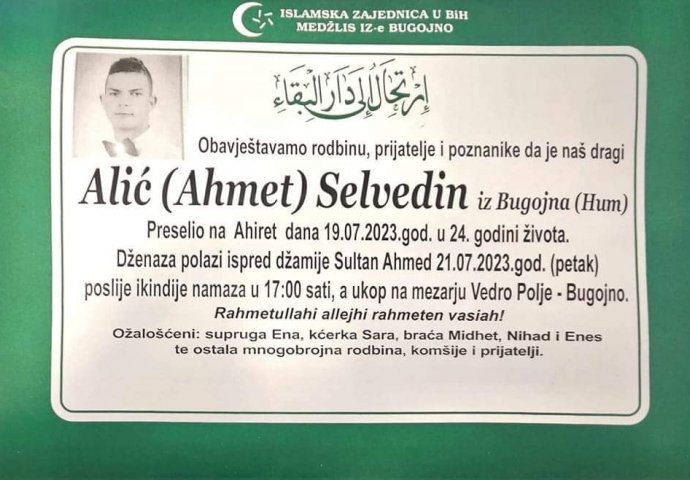 POZNAT TERMIN DŽENAZE MLADIĆU KOJI SE JUČER UTOPIO U JEZERU: IZA NJEGA OSTALI SUPRUGA I KĆERKA