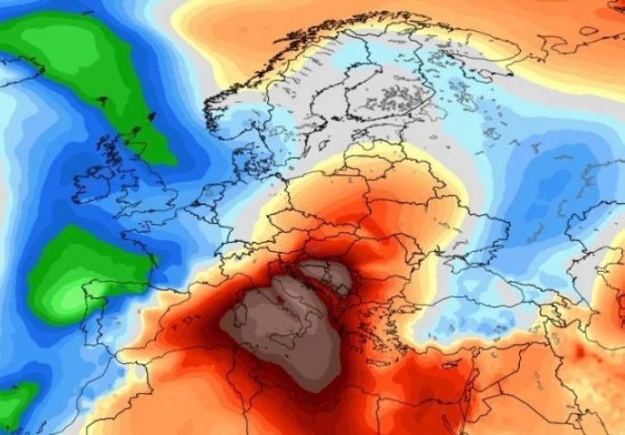 Nakon vala vreline, sredina sljedeće sedmice bi donijela osvježenje i nepogode. Na slici prikaz znatno viših temperatura od prosječnih vrijednosti za juli početkom sljedeće sedmice kod nas", objavili su na Facebooku, prenosi Radiosarajevo
