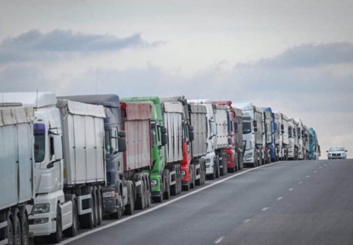 Mnogi nisu označeni, ali neki imaju nazive prijevozničkih tvrtki iz Poljske, Francuske, Njemačke i Češke, ali i ukrajinske tablice.