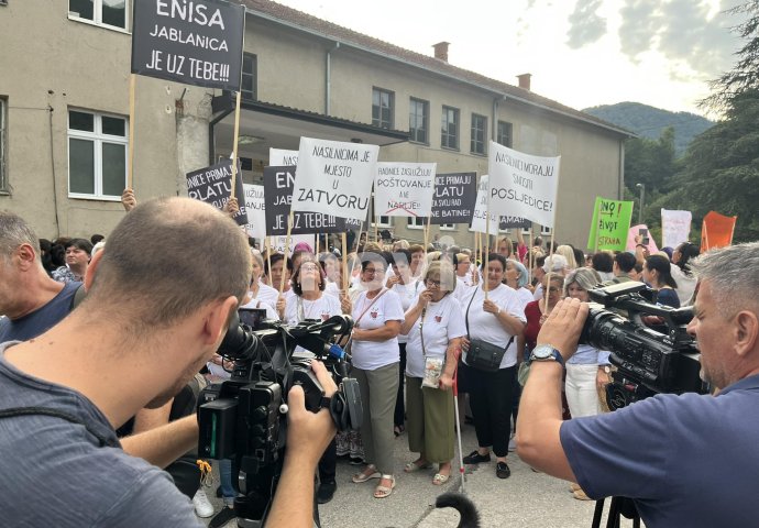 Kako javlja naš reporter sa lica mjesta, stotine ljudi iz svih dijelova BiH su došli da pruže podršku. “Nasilnici moraju snositi posljedice”, " Ne šuti, ne trpi, stop nasilju", "Radnice primaju platu za svoj rad, a ne za batine", “Nasilnicima je mjesto u zatvoru”, “Enisa, Jablanica je uz tebe”, “Nema opravdanja za nasilje nad ženama” su samo neki od plakata koje nose prisutni.
