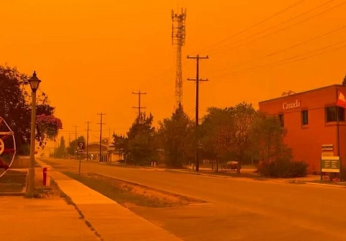 Kakva je zaista situacija na krajnjem sjeveru Kanade pokazuje video Dejne Ferguson iz mjesta Fort Smit. Na snimku je grad “obojen” u krvavo crvenu boju usljed požara.