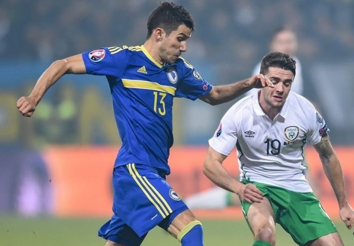 Selekcija BiH remizirala je sa Irskom 1-1 u prvom meču baraža za odlazak na Evropsko prvenstvo u Francuskoj naredne godine.