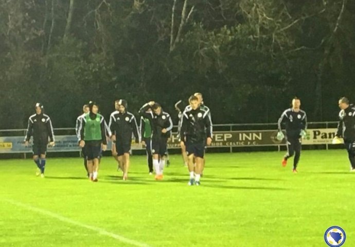 Kiša ni jak vjetar nisu omeli selektora Mehmeda Baždarevića i njegove pomoćnike da u suboru naveče održe trening na terenu lokalnog kluba Wayside Celtik u Dablinu, prenosi NAP.