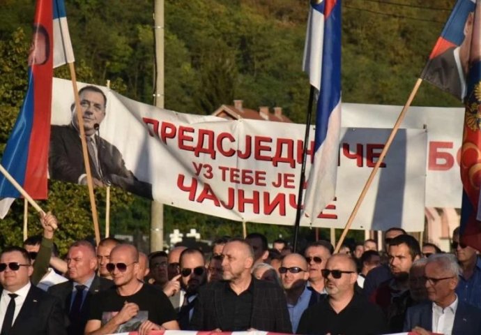 Protesti su počeli nakon što je Tužilaštvo BiH protiv Milorada Dodika, predsjednika manjeg bh. entiteta, i direktora Službenog glasnika RS Miloša Lukića podiglo optužnicu zbog neustavne odluke da se ne objavljuju odluke visokog predstavnika u BiH Christiana Schmidta.