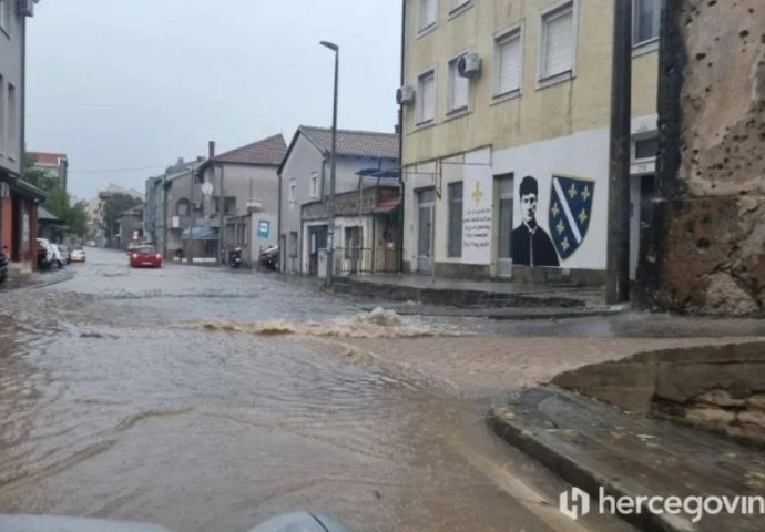HAOS U MOSTARU, POPLAVLJENE ULICE, OČEKUJU SE JAKI UDARI VJETRA: Stiglo i upozorenje za vozače - izlila se nafta