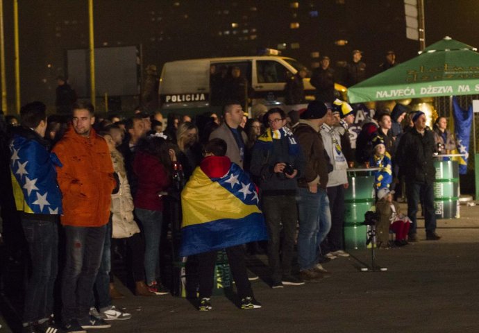Veliki broj Zeničana došao je na plato na Kamberovića polju u Zenici, gdje su imali priliku da prate ovaj susret na LED ekranu dimenzija 16 metara kvadratnih.