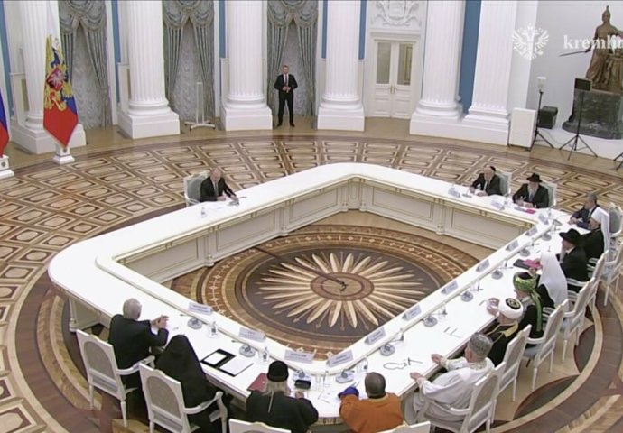 Ruski predsjednik Vladimir Putin ove nedelje je održao sastanak sa liderima različitih vjerskih zajednica za ogromnim stolom, što mu je omogućilo da drži priličnu distancu, kao što je to redovno činio poslednjih godina kada se sastajao i sa stranim zvaničnicima za ovalnim stolom dugim oko pet metara, navodno zbog straha od zaraze korona virusom.