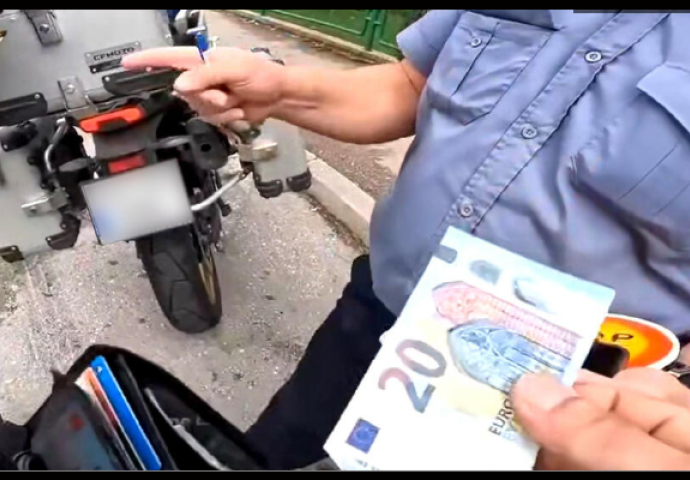 Turski turisti na motorima snimili su pomoću kamere na kacigi saobraćajnog policajca u Jablanici u BiH kako uzima mito od 20 evra.
