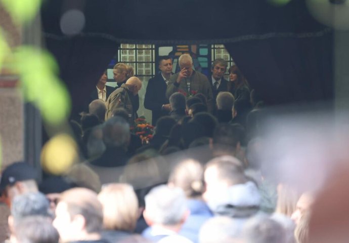 Brojne kolege su došle da se oproste od legendarnog glumca. Prisutni u kapeli grcaju u suzama dok se čuju pjesme, među kojima je i "Zlatni dan".