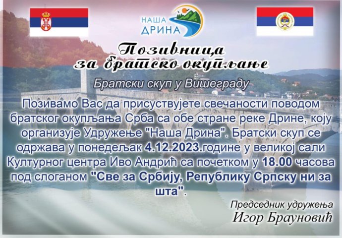 Organizator skupa, udruženje "Naša Drina", najavilo je da će ovo biti bratski skup Srba.