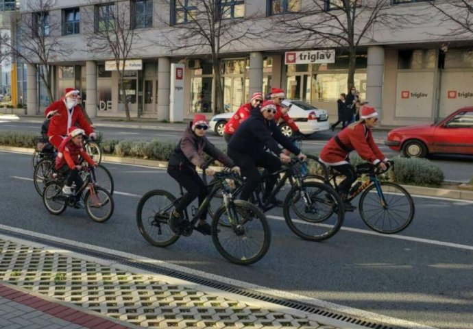 Biciklisti obučeni u crvena odijela i opremljeni slatkim poklonima za djecu vozili su krug po cijelom gradu.