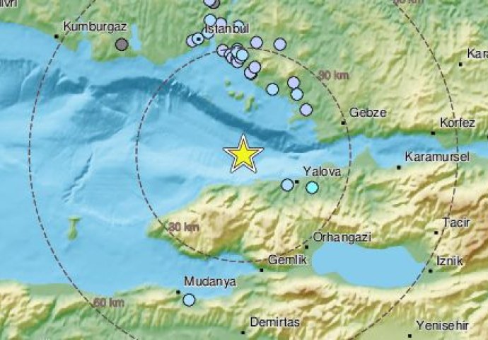 Epicentar je zabilježen na strani Jalove kod Mramornog mora.