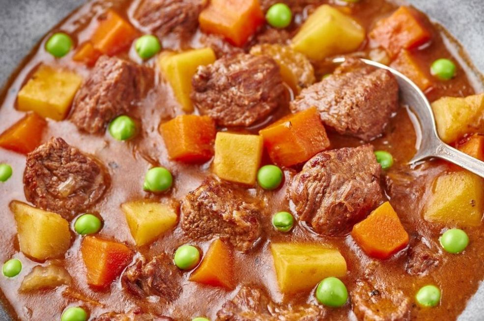 Luk i praziluk propržiti na ulju i poslozi, pa dodati meso isjeckano na kockice. Začiniti sa suhim biljnim začinom, biberom i slatkom mlevenom paprikom. Ako želite možete da dodate i tucanu ljutu papriku i vlašac. Kada se meso malo upržilo, dodajte sitno seckan krompir, mrkvu i bijeli luk. Promešajte, pa dodajte grašak i opet promiješajte. Dodajte malo mirođije, malo kečapa i nalijte sa vodom. Poklopite i kuvajte na tihoj vatri. Napravite supu sa toplom vodom i dodajte malo mirođije, pa i nju nalijte u grašak. Kuhajte nekih 30-45 minuta (procijenite sami).