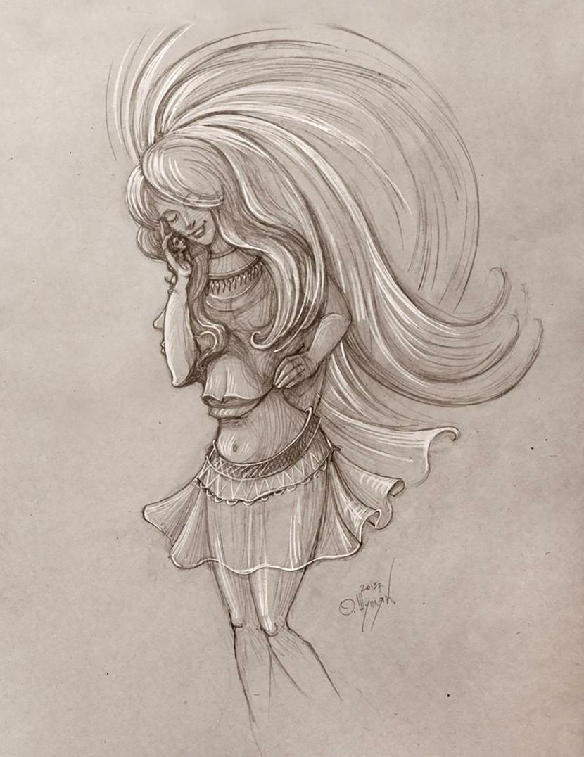 – Na prvi pogled, slika izgleda kao da prikazuje skicu žene kojoj kosom vijori vjetar. Vidi se kako nosi lijepu haljinu dok se smije i razgovara telefonom – kaže umjetnik. Ali pravi izazov leži u otkrivanju skrivenih žena u umjetničkom djelu.