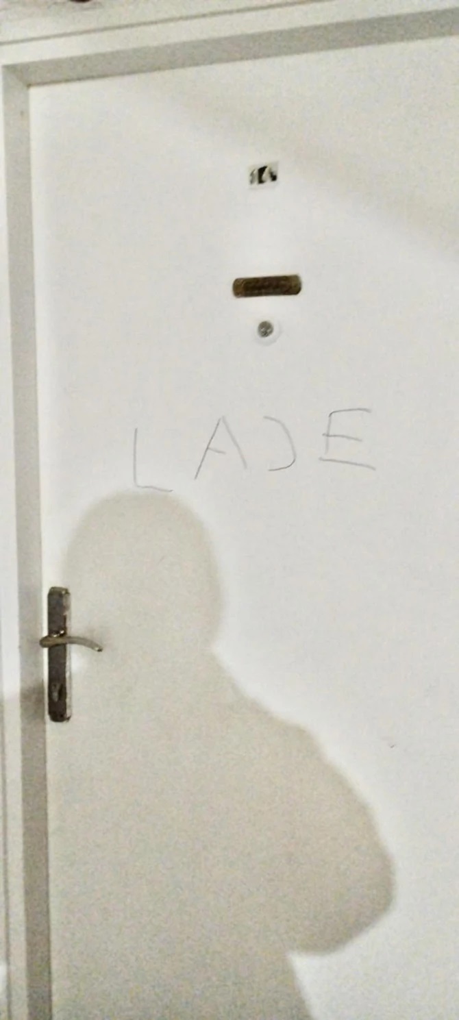 Eto, razmišljam od tada. Prvo, kome može uopšte da padne na pamet da bilo kome piše po ulaznim vratima i ostavlja poruke markerom. Da uništava tuđu imovinu? Čak i da je nekome zaista smetalo, postoji oglasna tabla na ulazu u zgradu gdje svako zastane i pogleda šta piše. Postoje i cedulje koje na vrata mogu da se zalijepe. Također, komšija može i da se potpiše, pa da mu se javim i da porazgovaramo o tome. Može i da sazove skup stanara, sazivali smo ga mnogo puta oko raznih drugih stvari i iznosili probleme.
