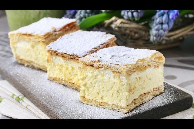 Dno i stranice tepsije obložite papirom za pečenje ili dvostrukom plastičnom folijom, na dno stavite jedan komad tijesta. Kremu procijedite kroz sito na vrhu tijesta, poravnajte lopaticom, na to stavite drugi list tijesta i prekrijte papirom za pečenje ili plastičnom folijom. Stavite u frižider da se ohladi, piše Slobodna Dalmacija.