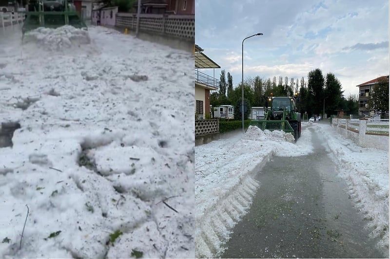 The unbelievable amount of hail that fell yesterday during a hailstorm in the comune of Quattordio, Province of Alessandria, Italy 🇮🇹